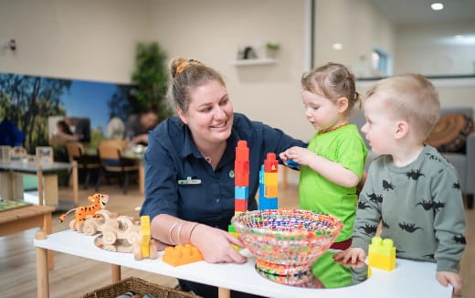 This classroom is designed for children ages 12 months through 24 months. There are nine children and two dedicated staff members who tend to the needs of these young toddlers. Daily activities include finger-plays, stories, songs, social interactions, and the introduction of simple art activities such as painting, gluing, Play-Doh™, sand, and the water table. You will receive a "Toddler Tattler" note that includes information about your child's day, including how they ate, slept, and played.